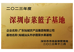 伴隨著深圳改革開放的發展,燦城農產品集團成為家喻戶曉的農產品商貿品牌,在行業內率先順利通過多個管理體系認證,現為國家級農業龍頭企業、國家級高新技術企業、廣東省農業龍頭企業、深圳市農業龍頭企業、深圳市500強企業、深圳市菜籃子、廣東省誠信示范單位、連續六年守合同重信用企業、深圳市龍華區質量示范企業。