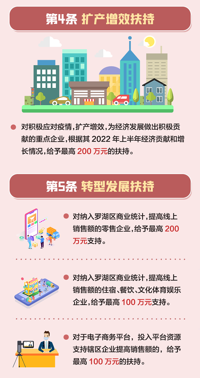 6.對南山區限上零售、住宿、餐飲業企業,按2021年實現銷售額(營業額)分檔予以穩企補貼,每家企業最高不超過50萬元。(責任單位:區工業和信息化局)